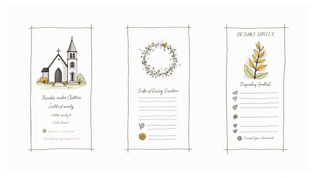 This type of program is effective because it prioritizes clarity and solemnity. It’s a familiar format that removes any uncertainty for guests, allowing them to participate fully in the service without wondering what comes next. Its structure is particularly well-suited for religious or formal services, such as a traditional Christian funeral following a hymnal format or a Jewish memorial service that includes Hebrew passages. It’s also the standard for military funerals, where official insignia and honors are incorporated into the design. To gain a deeper understanding of how these elements fit together, you can find a comprehensive overview in our step-by-step guide to planning a funeral service.